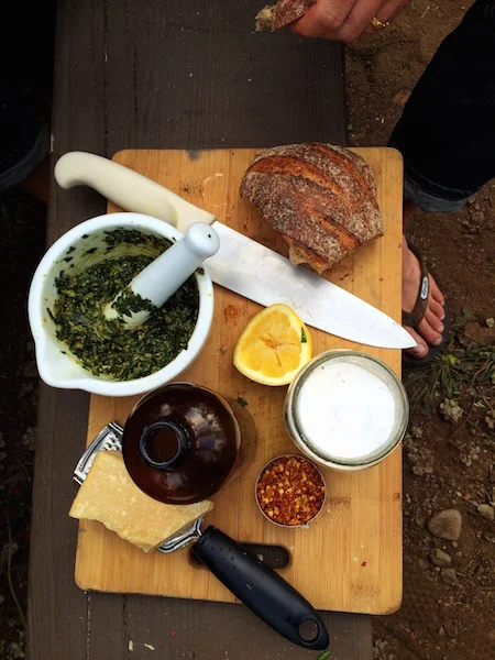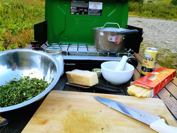 All it takes are a few extras thrown in the camp kit - toasted pine nuts, lemon, chunk of parm, basil - for a luxurious meal out in the fresh air.