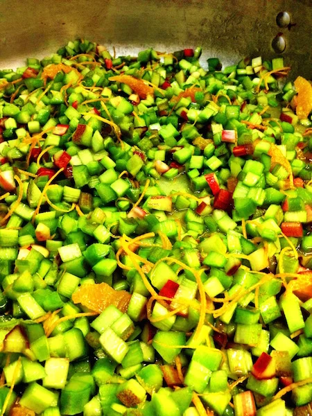 the start of rhubarb and citrus jam...a spoon stirred into yogurt is filthy good.