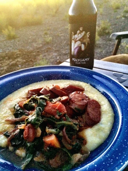 Elk sausage over polenta...with Polygamy Porter: "Why have just one?"