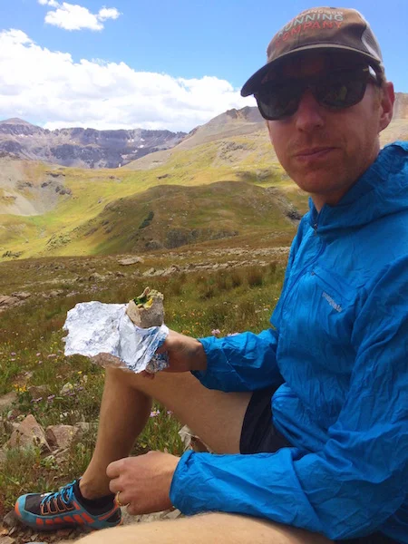The summer before my last year of college I decided to drive my little red pickup truck out east so I could really it whoop up. It was a pretty epic road trip - Stinson Beach, CA to NYC. The culinary highlight, besides the salad bar at KFC, was my discovery of the Road Rap. Whole wheat tortilla, avocado, cucumber, hummus, you get the picture. Basically whatever you have on hand rolled up in a wrap. It is dream road food. Or high altitude refuel food, like Nicky here enjoying it at 12,000 feet. Important things I have learned in wrapdom: always have tinfoil; if you use tomatoes eat right away; sprouted grain tortillas do not roll well but taste delicious! Another star combo: turkey, salami, tomato, dijon, cheddar. Duh.